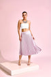 This chic pleated midi skirt is a versatile addition to any evening wear collection. The rich color palette and delicate pleats create beautiful movement and texture, while the high-waisted design cinches the silhouette for a flattering fit. Crafted from a lightweight, flowing fabric, this skirt is perfect for a sophisticated yet effortless looks styling with a fitted black bodysuit or a delicate silk camisole. Complete the look with pointed-toe heels and a minimalist clutch and accessorize with subtle gold jewelry to add a touch of elegance.