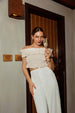 Embrace feminine evening flair with the Willow Shirred Crop Top, a beautifully textured piece available in both a chic black and a delicate blush pink. This alluring top features a wide, elegant off-the-shoulder neckline framed by a subtle ruffle, which is balanced by the fully smocked bodice that ensures a close, flattering fit. The structured texture and playful ruffle at the hem make this crop top a glamorous centerpiece for any warm-weather evening event. Ideal for a cocktail party, a stylish dinner on a patio, or a night out dancing, this top pairs perfectly with high-waisted bottoms to complete a balanced and sophisticated ensemble.