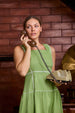This sleeveless midi dress is crafted from breathable linen-cotton fabric, combining comfort with refined style. Featuring a flattering square neckline and contrast embroidered lines, it stands out with a unique, contemporary charm. The clean silhouette and natural texture make it perfect for warm days or relaxed occasions. Effortlessly elegant and versatile, this dress offers the perfect balance of simplicity, comfort, and artistic detailing for everyday sophistication.