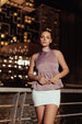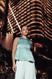 Elevate your evening look with this city chic Peplum Top, a beautifully tailored satin top available in a chic teal or soft mauve, designed to blend structure with feminine flair. This top features a sophisticated collared halter neckline that fastens elegantly at the back, creating a flattering cut that highlights the shoulders, while the fitted bodice gently flares out into a structured peplum hem. Crafted from a smooth, luminous satin, this piece is a perfect choice for a cocktail reception, a dressy dinner event, or a night out that calls for elevated casual style. For a polished ensemble, pair this top with tailored white wide-leg trousers or a fitted pencil skirt, and complete your look with gold statement earrings and heeled sandals, letting the top's rich color and unique silhouette be the centerpiece of your outfit.