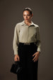An essential, elegant foundation piece for sophisticated suiting. This shirt features a timeless pointed collar and a clean button-down silhouette with long, neatly finished sleeves. Crafted from a high-quality lightweight material in a versatile, soft neutral hue. The fabric offers a subtle sheen and impeccable drape, ensuring a professional yet relaxed fit when tucked or worn loose. The perfect workhorse for the CEO's wardrobe, easily transitioning from day to evening.