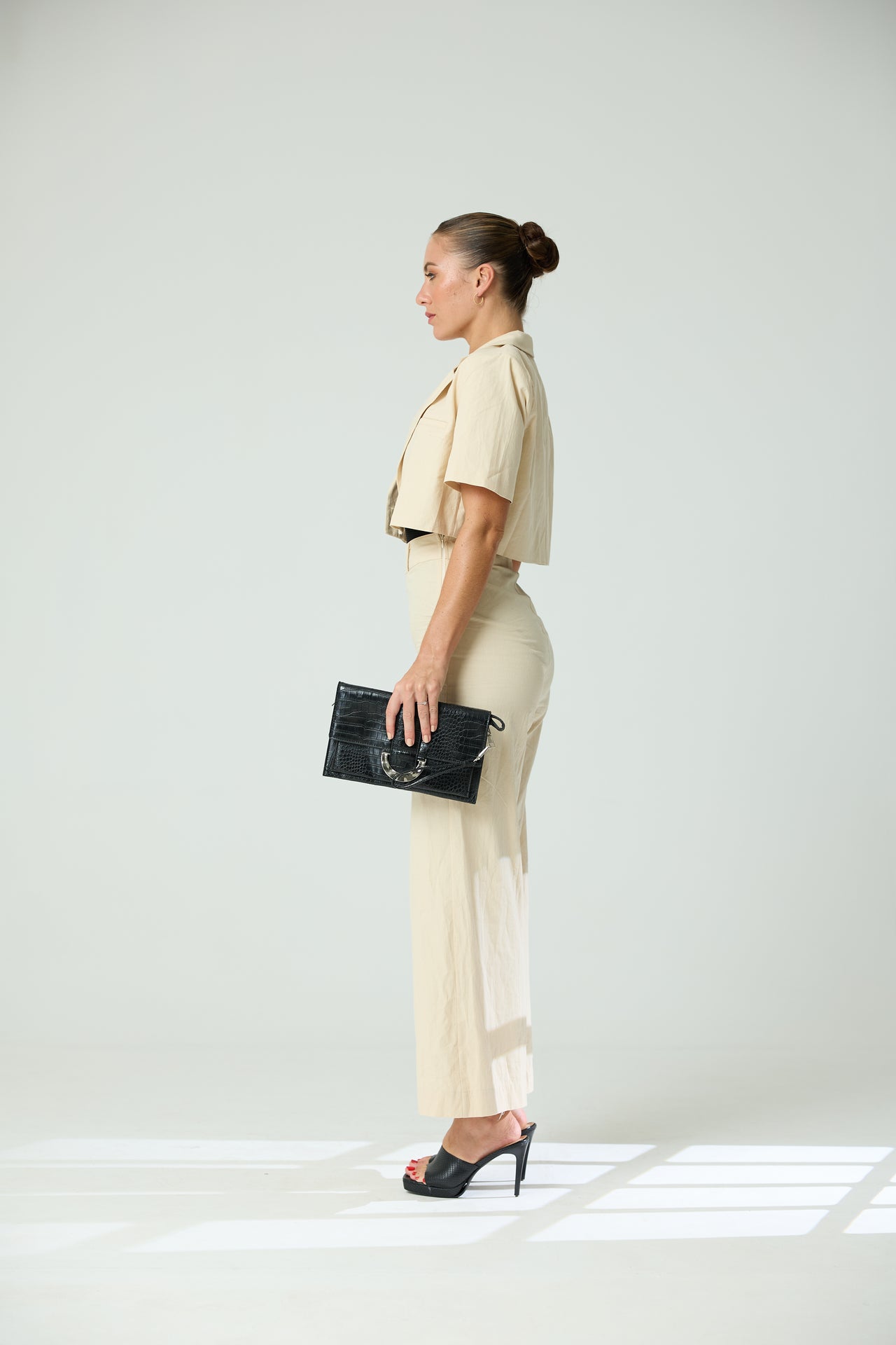 Step into timeless sophistication with this coordinated cotton ensemble. The solid wide-leg pants, crafted from breathable, soft cotton, offer a flattering high-rise silhouette and fluid drape for all-day comfort and movement. Paired with a tailored blazer featuring clean lines, a structured shoulder, and a single-button closure, this set brings a modern twist to classic tailoring. Whether you’re heading to the office or dressing up for a brunch date, this versatile duo balances comfort and polish with ease. Style it with a tucked-in blouse and heels for a refined finish, or keep it casual with sneakers and a tee.
