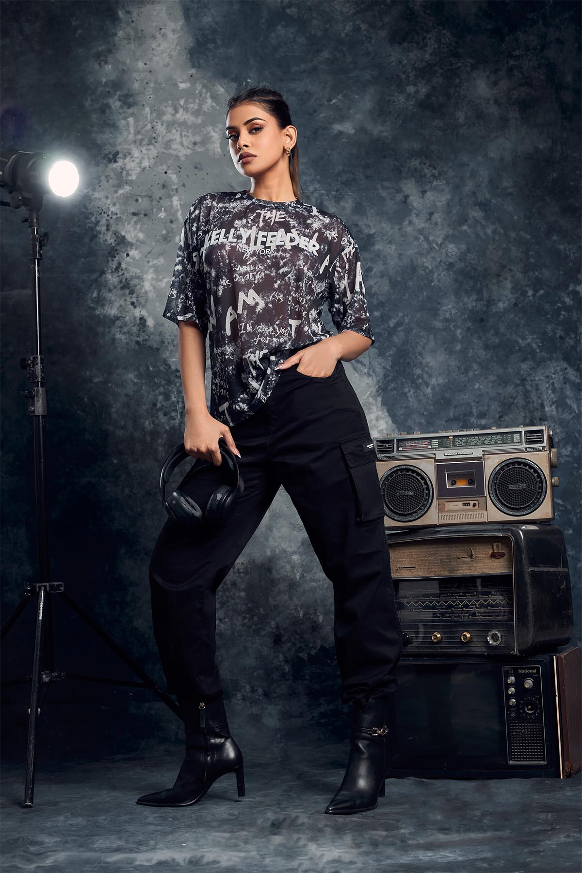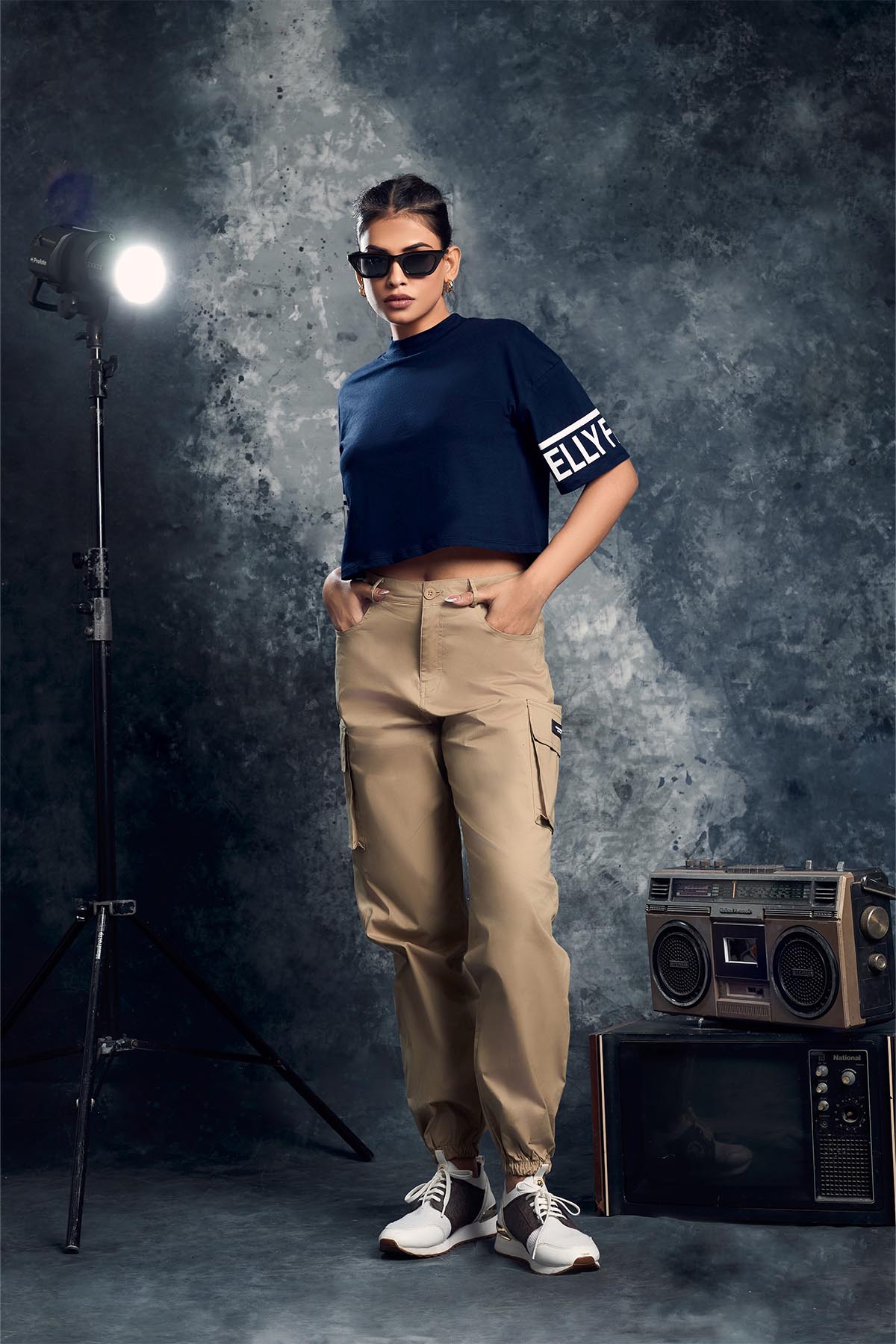 - Model height: 5’.8”