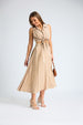 This casual top is a versatile and trendy piece that offers both comfort and style. Its neutral color, sleeveless design, and fashionable tie-front detail make it a perfect choice for warm-weather casual outings, beach holidays, or relaxed social gatherings. When paired with its matching skirt, it creates an elegant and effortless two-piece outfit.