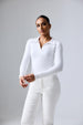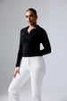 Effortless. Chic. Endlessly versatile. The Evi Long Sleeve Polo blends a sleek, fitted silhouette with soft stretch comfort. Featuring a sharp collar and minimal neckline, it’s that modern essential that elevates every casual look—simple.