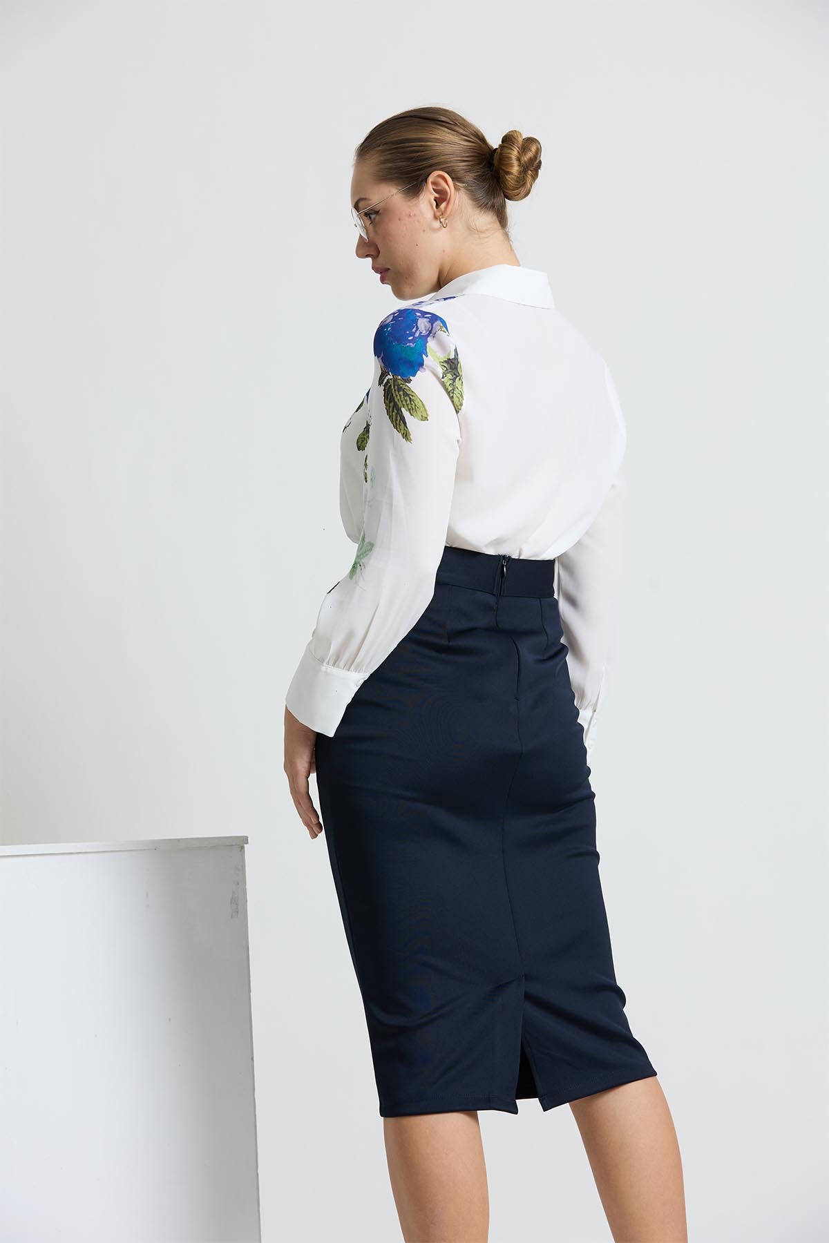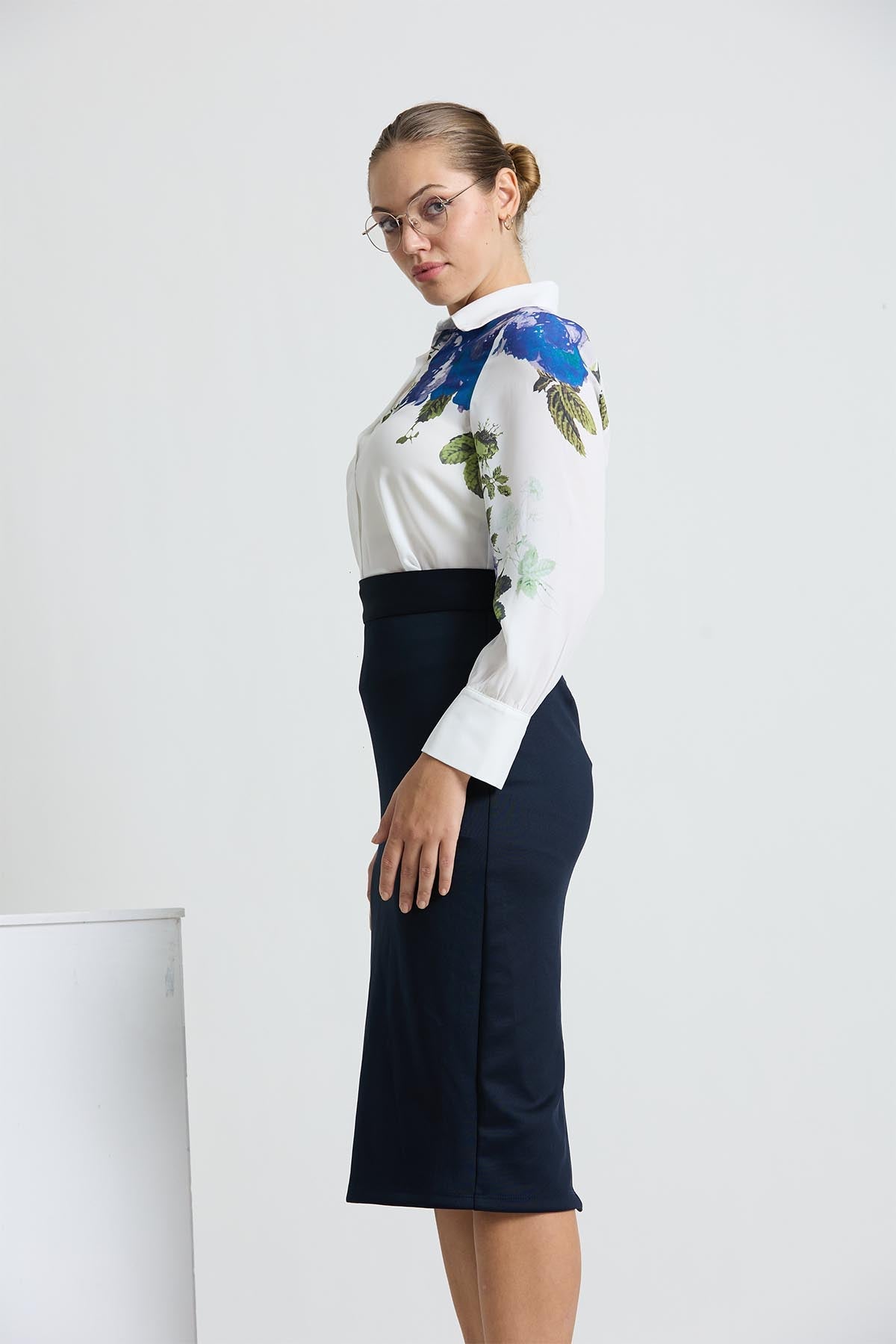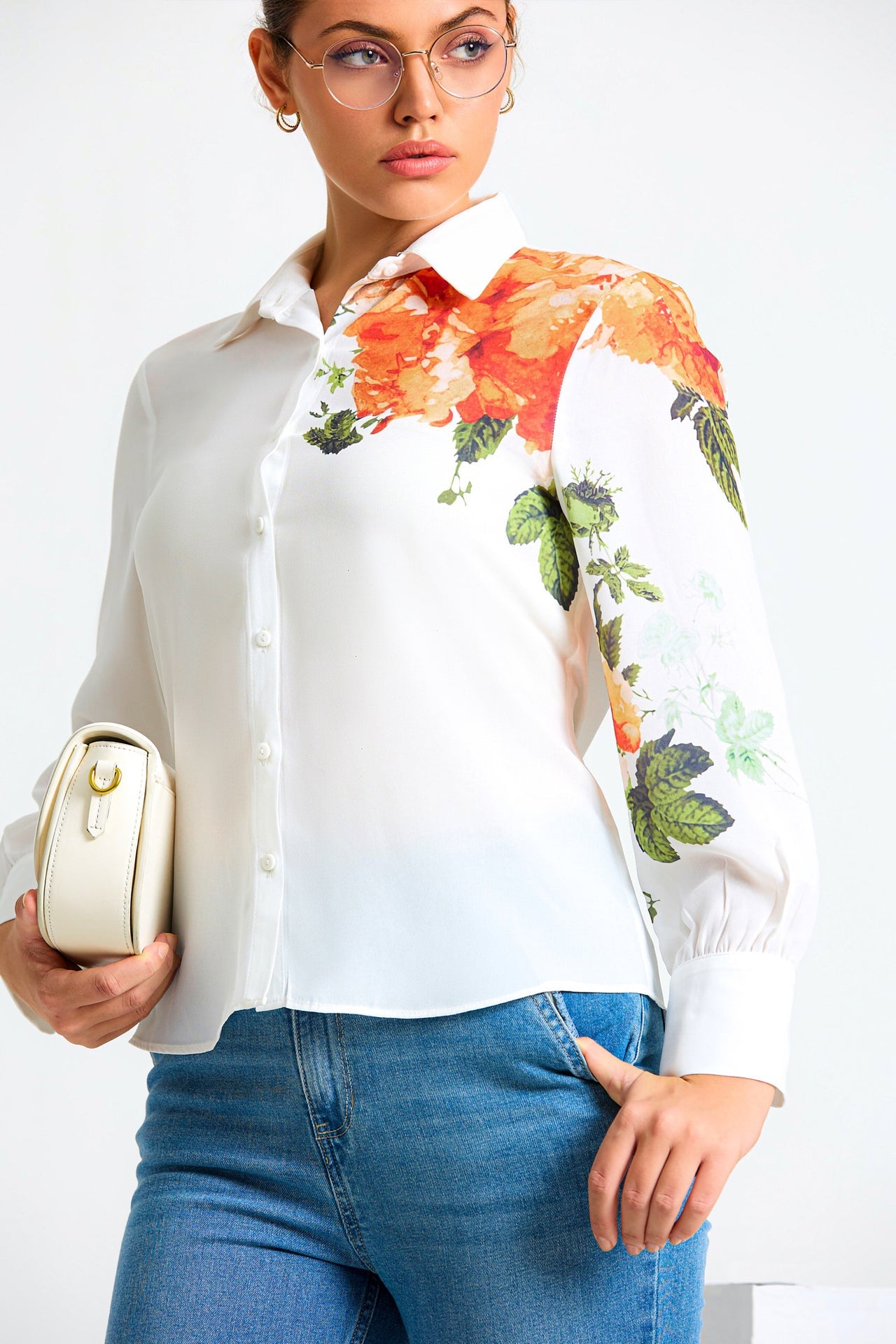 A stylish semi-fitted top featuring eye-catching placement prints along the shoulders. Crafted with soft, breathable fabric, it offers a flattering silhouette with long sleeves for versatile, season-spanning wear. Perfect for pairing with jeans or tailored pants for an effortlessly chic look.