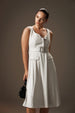 A timeless dress that blends professional gravitas with sophisticated fluidity. This piece features a refined sleeveless bodice and a flattering square or scoop neckline. The smooth, tailored upper body contrasts beautifully with the gracefully flowing A-line midi skirt. Details include subtle patch pockets and a prominent, wide square-buckle belt that perfectly defines the waist. Crafted from a structured yet fluid fabric in a deep, authoritative color. An elegant, versatile dress that projects quiet confidence in any business environment.