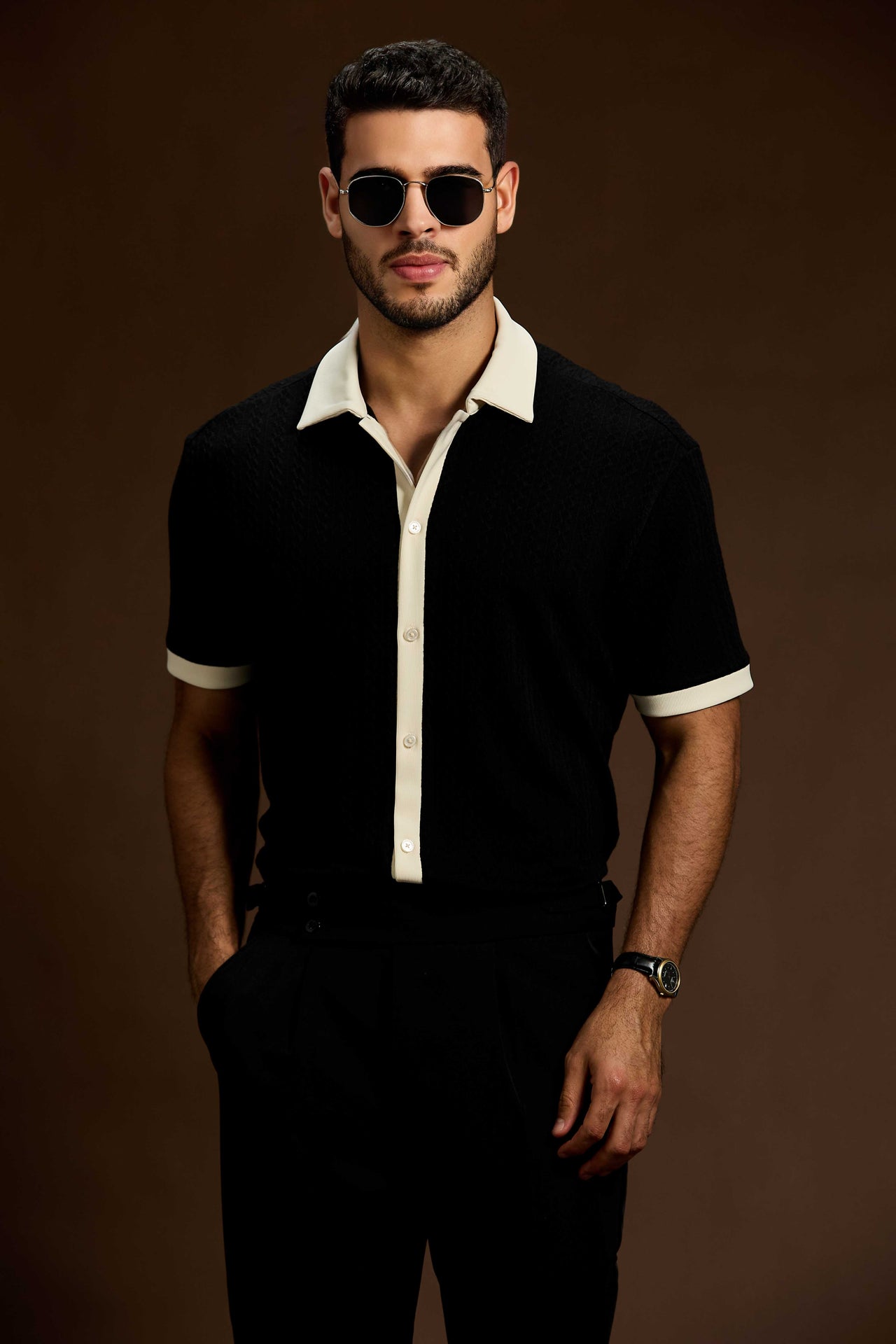 Lunaris contrast knit Polo shirt