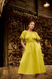 Crafted from breathable linen-cotton fabric, this midi-length dress combines comfort with effortless style. Featuring puff sleeves and a flattering elasticated waist, it enhances your silhouette while ensuring ease of movement. The curved neckline adds a soft, feminine touch, and functional side pockets provide everyday practicality. Perfect for warm days, casual outings, or relaxed gatherings, this dress blends relaxed charm with subtle elegance for an easy, versatile wardrobe staple.
