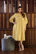 Crafted from breathable and comfortable linen-cotton fabric, this button-down dress features delicate floral embroidery for a feminine touch. The elbow-length sleeves and curved hem add softness to the silhouette, while side pockets bring in effortless functionality. Light, airy, and easy to wear — it’s the perfect piece for warm days and relaxed elegance.