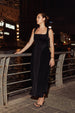 Captivate the room in the Noir Icon Maxi Dress, a sophisticated evening piece available in both a striking deep color halter-neck knit and a chic square-neck design. This style features a modern halter neckline with back zipper detail and a fine vertical detailing throughout the figure-hugging, maxi-length silhouette with broad straps and a unique diagonal seam on the Side of the bodice that flows into a voluminous skirt for a dramatic effect. This style perfect for formal dinners, gallery openings, or as an elegant wedding guest choice, offering a blend of modern structure and timeless grace. Style the dress with minimalist metallic jewelry and a pair of elegant heeled sandals to maintain a streamlined, polished look for any upscale event.