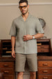 An effortless blend of structure and ease, this short-sleeve shirt is crafted from a lightly textured fabric that offers both breathability and a refined hand feel. The open-collar design, relaxed drape, and subtle surface texture give it an understated sophistication suited for everyday wear or elevated casual moments. Designed with clean tailoring and soft movement, it captures the essence of modern comfort and timeless simplicity.