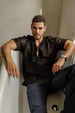A bold reinterpretation of casual sophistication, this short-sleeve shirt is crafted from a semi-sheer textured fabric that blends structure with fluidity. The lightweight weave offers breathability and a tactile finish, revealing subtle tonal variations and refined transparency that elevate its modern appeal. Designed with an open collar and relaxed silhouette, it delivers an effortless statement perfect for evenings, elevated casualwear, or resort-inspired styling.