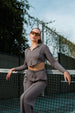 The pintuck front detailing adds subtle structure, elevating this casual piece with a tailored edge. Cropped for a flattering fit, it's your go-to layer for workouts, weekend plans, or just lounging in style