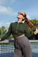 Stay effortlessly cool in this Ribbed Crop Hoodie, where comfort meets contemporary style. Designed in soft, stretch rib fabric, it features a front metal zipper, adjustable drawcord hood, and long sleeves for that perfect off-duty vibe.