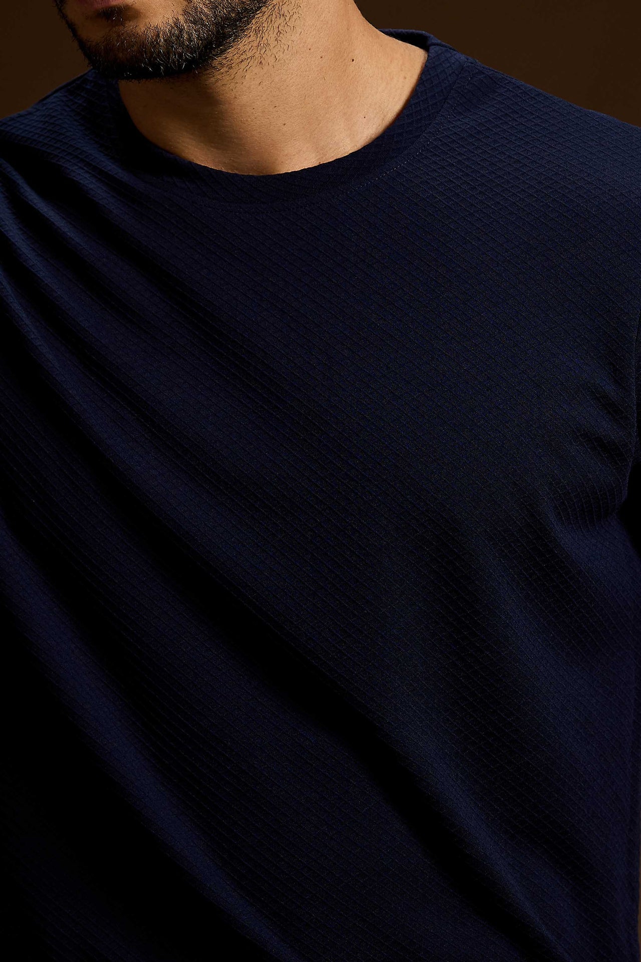 This T-shirt is crafted with a refined micro-grid textured knit that delivers a modern, technical aesthetic while enhancing everyday comfort. The structured surface adds depth and dimension to the fabric, creating a premium look that stands out without the need for heavy graphics.