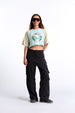 Make a bold statement in this oversized crop tee, blending laid-back comfort with graphic edge. Featuring contrast raglan sleeves and a standout “Reach for the Sky” print with skull and floral details, it delivers a mix of rebellion and optimism. Crafted from soft cotton jersey, it’s perfect for effortless street style.
