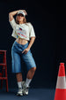 Make a bold statement with this cropped graphic tee, featuring the iconic 'Welcome to Las Vegas' sign reimagined with Scylla flair. Designed in a relaxed, boxy silhouette with dropped shoulders and soft cotton fabric, it blends street style attitude with effortless comfort—perfect for your next city stroll or night out.