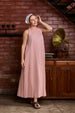 Crafted from breathable, comfortable linen-cotton fabric, this sleeveless maxi dress blends effortless elegance with everyday ease. Featuring a flattering curved neckline and a relaxed, loose-fitted silhouette, it ensures all-day comfort. The unique back detail adds a modern twist, while functional side pockets enhance practicality. Perfect for sunny days, vacations, or casual outings, this versatile piece brings natural charm and sophistication to your wardrobe.